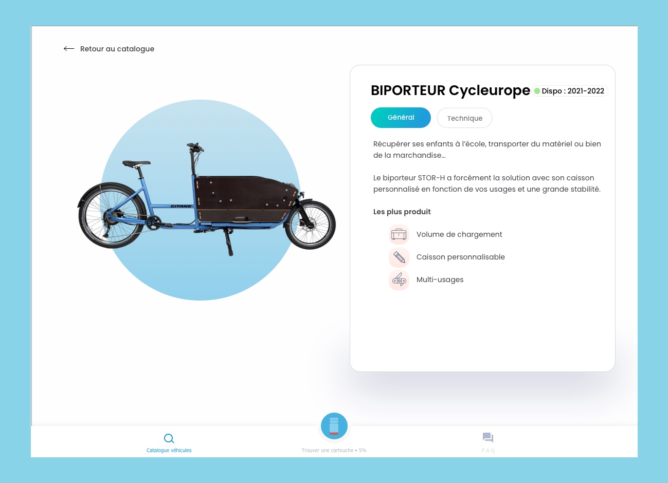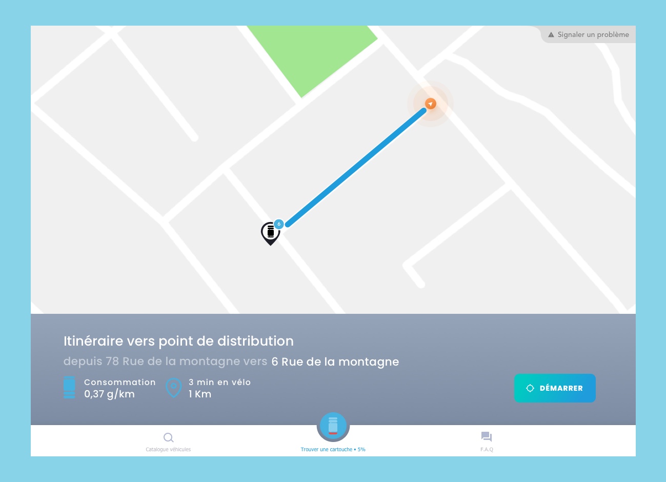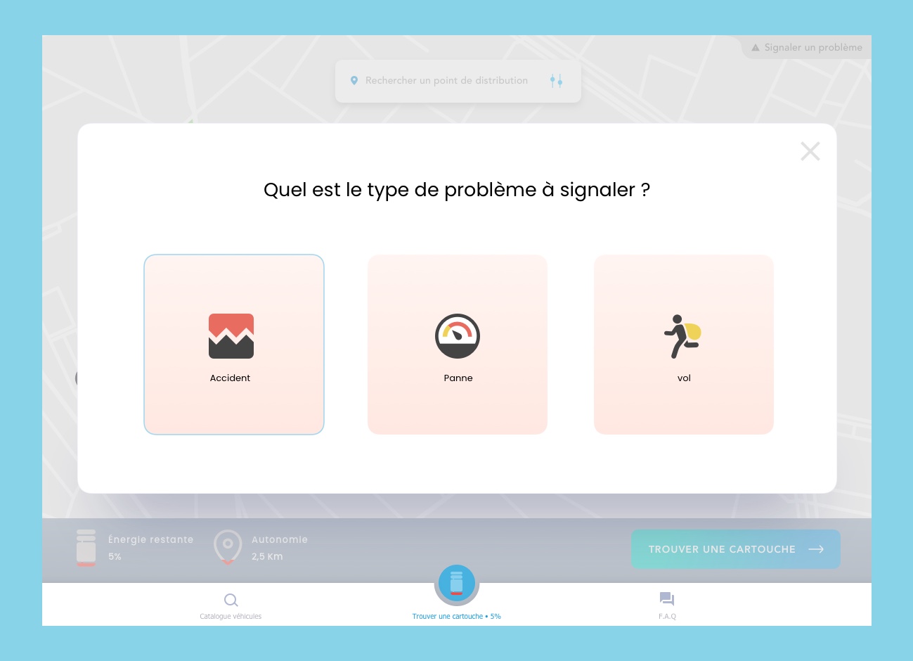Using Stor-h's removable hydrogen tank technology, employees can exchange their empty hydrogen tank for a new full one. To do so, they can use the map and GPS functionalities in order to search for stations around them.