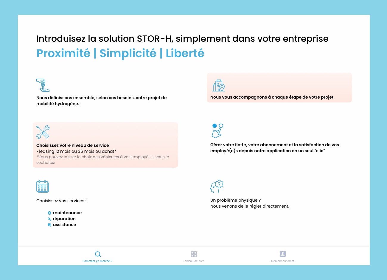 Create an Ipad application in order to help companies manage their fleet of hydrogen-fueled vehicles taking advantage of Stor-h's exchangeable hydrogen tank technology